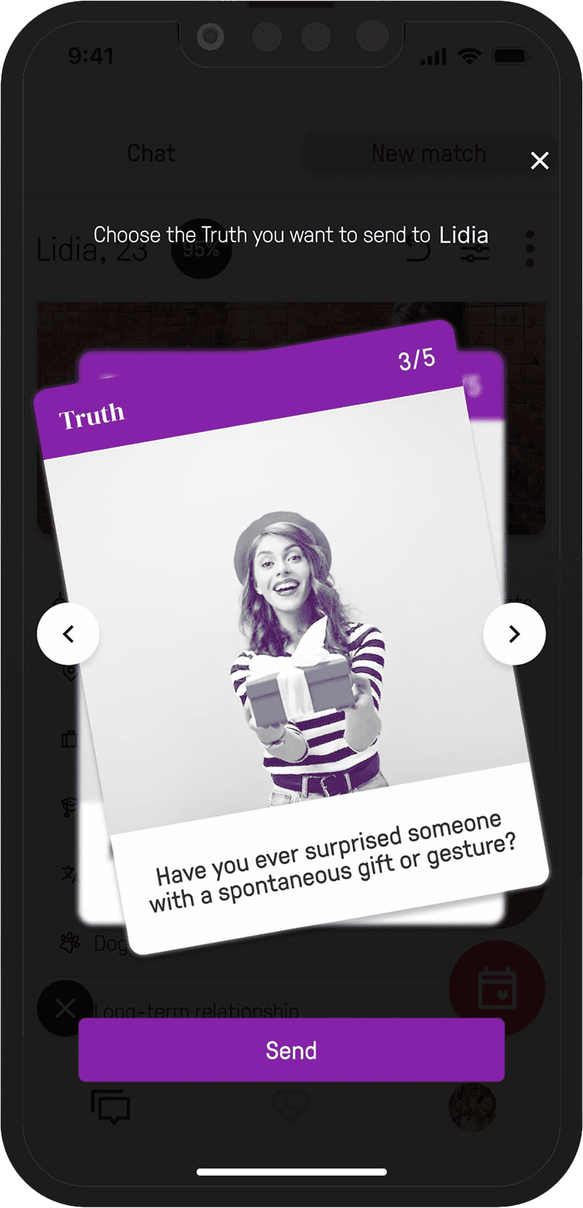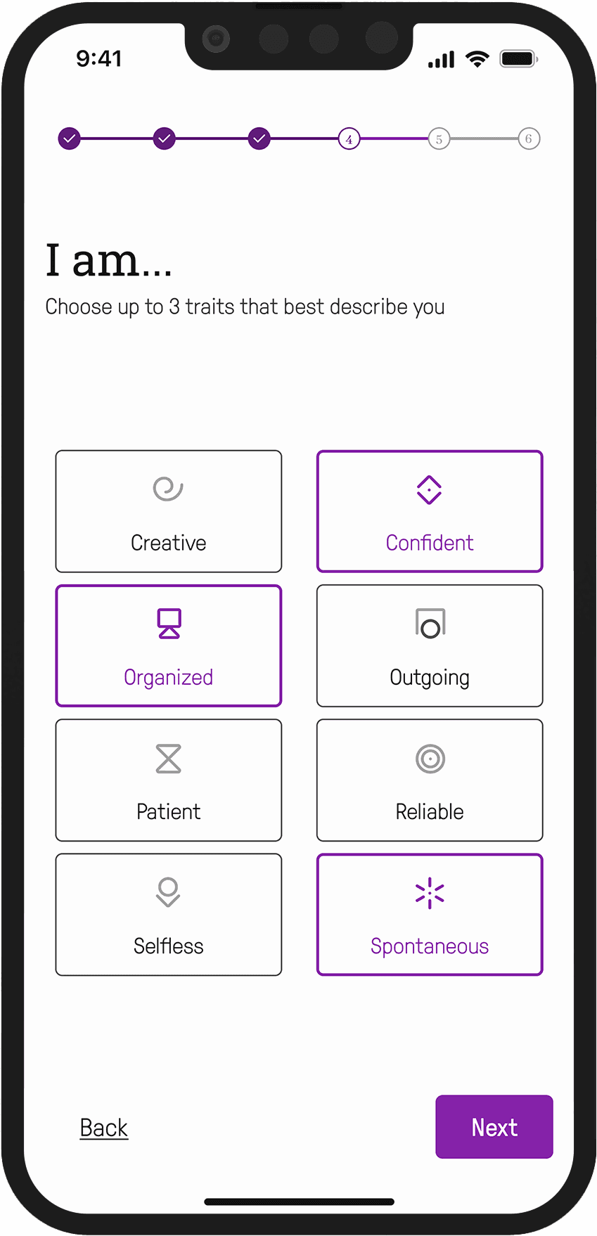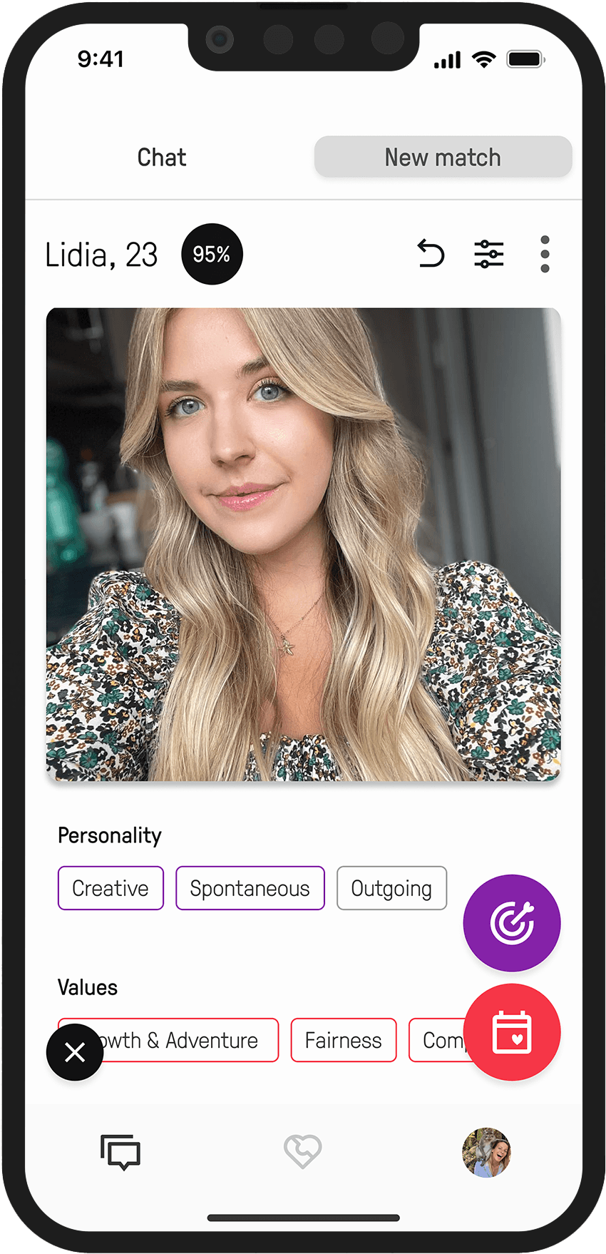 To improve the quality of the matches, match suggestions are based on complementary traits, and values that users input during the registration.